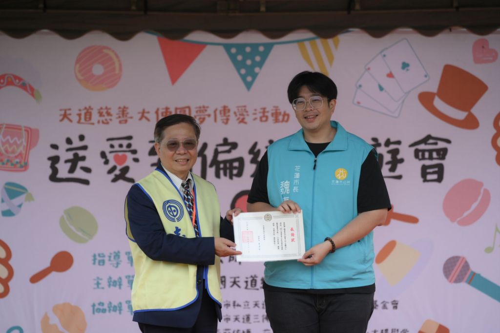 魏嘉彥市長表示,花蓮是一塊充滿愛與溫暖的土地,而本次由天道總會發起的慈善園遊會,不僅是一場充滿歡樂與希望的公益活動,更展現了社會大眾共同守護弱勢的力量。他強調,天道總會長年投入偏鄉服務與公益事業,讓愛心深入每一個需要的角落,令人由衷敬佩。花蓮市公所也將持續支持此類活動,共同推動社會正能量。