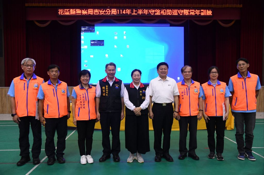 花蓮縣警察局吉安分局舉辦「114年上半年守望相助巡守人員常年訓練」,透過課程強化民力協勤能量,提升社區治安防護效能。縣長徐榛蔚昨(3)日晚間在立法委員傅崐萁、花蓮縣警察局長陳百祿、吉安分局長陳盈元、吉安鄉長游淑貞及花蓮縣巡守大隊長詹維明陪同下出席,感謝巡守隊員長年默默付出,共同守護鄉里安全。