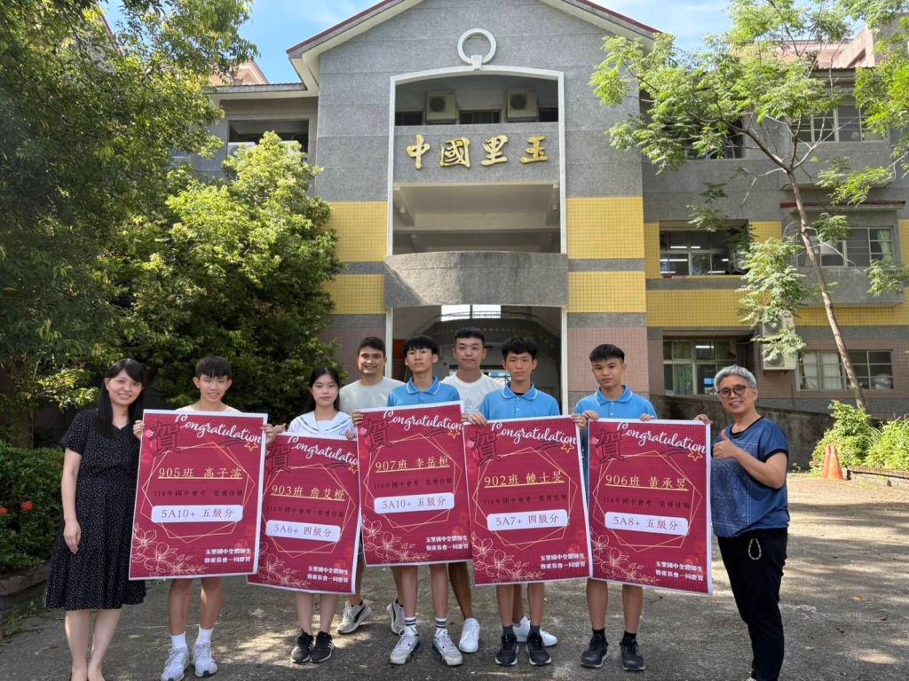 今(114)年度國中教育會考成績公布後,花蓮縣立玉里國中再次展現堅強實力,全校共有5位同學榮獲5A佳績。其中,高子濬同學與李岳桓同學更取得5A10+的優異成績,尤以李岳桓同學以「五科全對、數學非選擇題6級分」的滿分成績,創下玉里國中創校以來前所未見的紀錄,成為校史第一位達成此壯舉的學生。