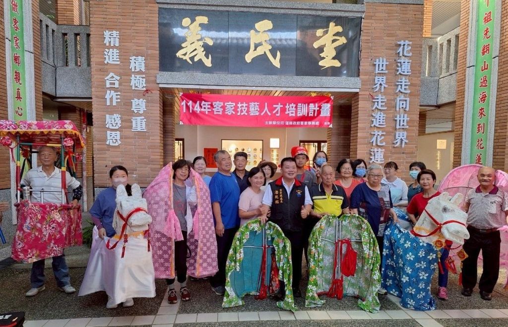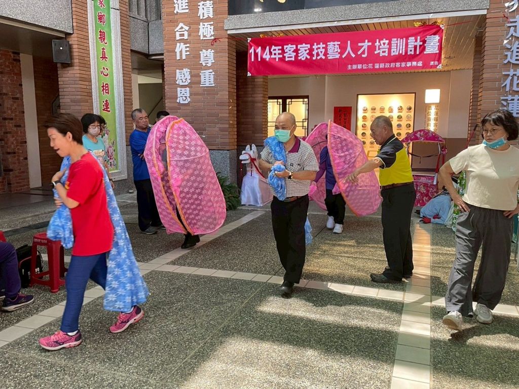 為推廣傳統客家文化,花蓮縣政府客家事務處自114年5月18日起,每逢週日於花蓮縣內辦理「藝陣研習課程」,內容涵蓋多項極具傳統特色的客家藝陣表演,包括「老背少」、「蚌殼精」、「狀元騎馬」、「跑旱船」等珍貴藝陣文化表演,邀請民眾共同參與、學習,體驗客家藝陣文化之美。