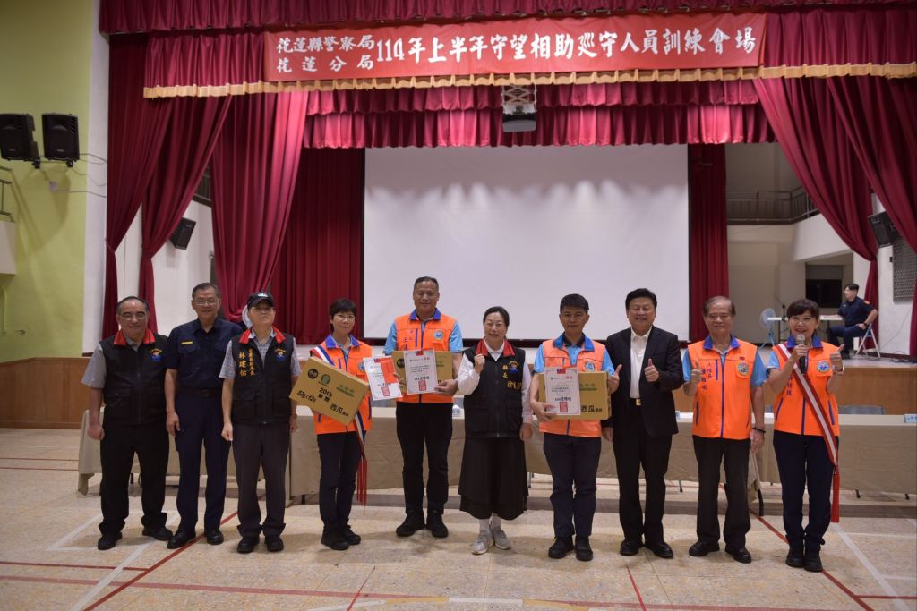 花蓮縣警察局花蓮分局昨(11)日舉辦「114年上半年守望相助巡守人員常年訓練」,縣長徐榛蔚親自到場頒贈獎狀表揚績優巡守人員,並向所有堅守崗位的巡守隊員表達誠摯感謝。
