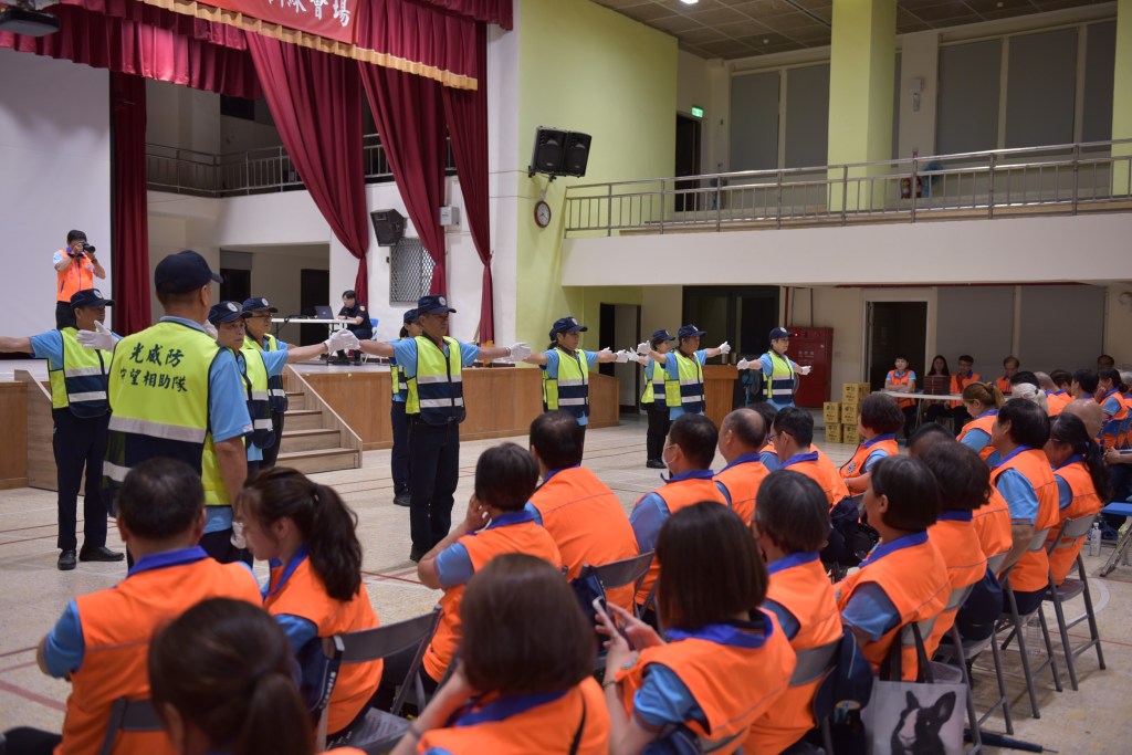 現場安排交通法規宣導、防空演練與交通指揮實作,各分隊均派員參與,演練內容扎實,徐縣長也特別提醒,隨著微型電動二輪車與電動自行車使用日趨普遍,巡守隊員應持續配合宣導正確使用觀念,特別對青少年族群加強宣導,強調安全帽須正確配戴、交通規則應確實遵守,營造更安全的用路環境。