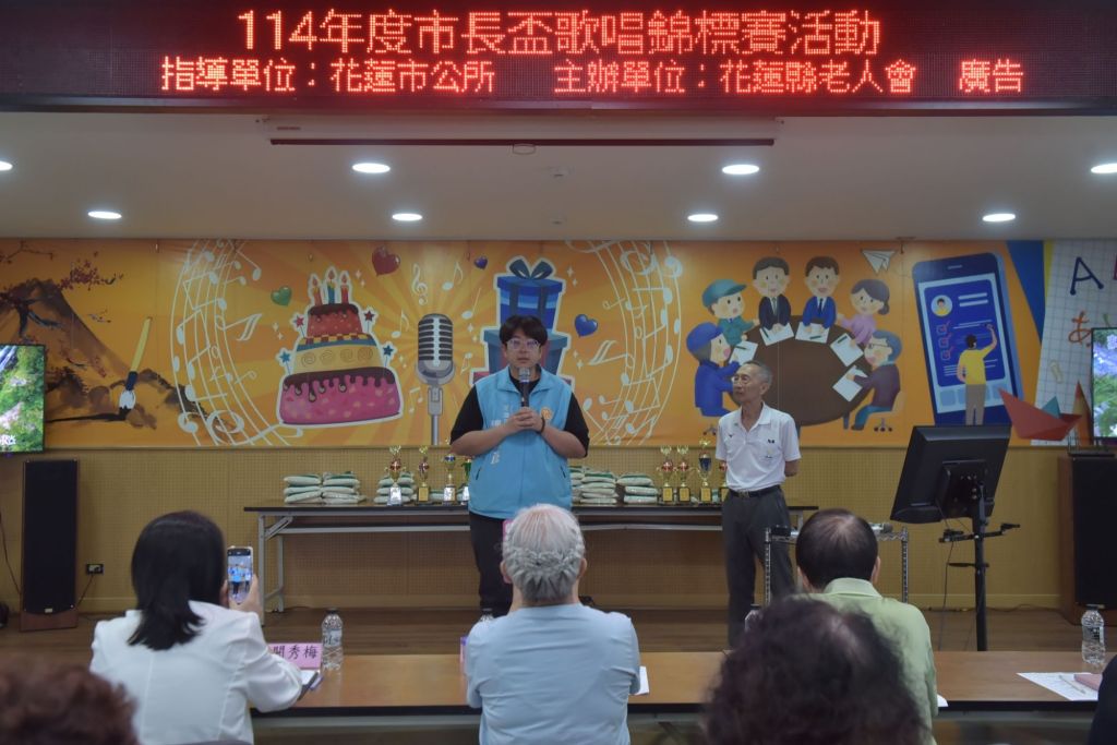 花蓮縣老人會今13日上午舉辦「114年度市長盃歌唱錦標賽活動」,共有32位會員報名參賽,市長魏嘉彥親自出席與長輩同歡,給予參賽者熱情掌聲,他表示,音樂不僅療癒身心,使人心情愉悅,也能透過歌曲旋律,拾回當時的悸動與記憶,希望大家在比賽中勇敢表現,並結交志同道合的朋友,為生活添加樂趣。