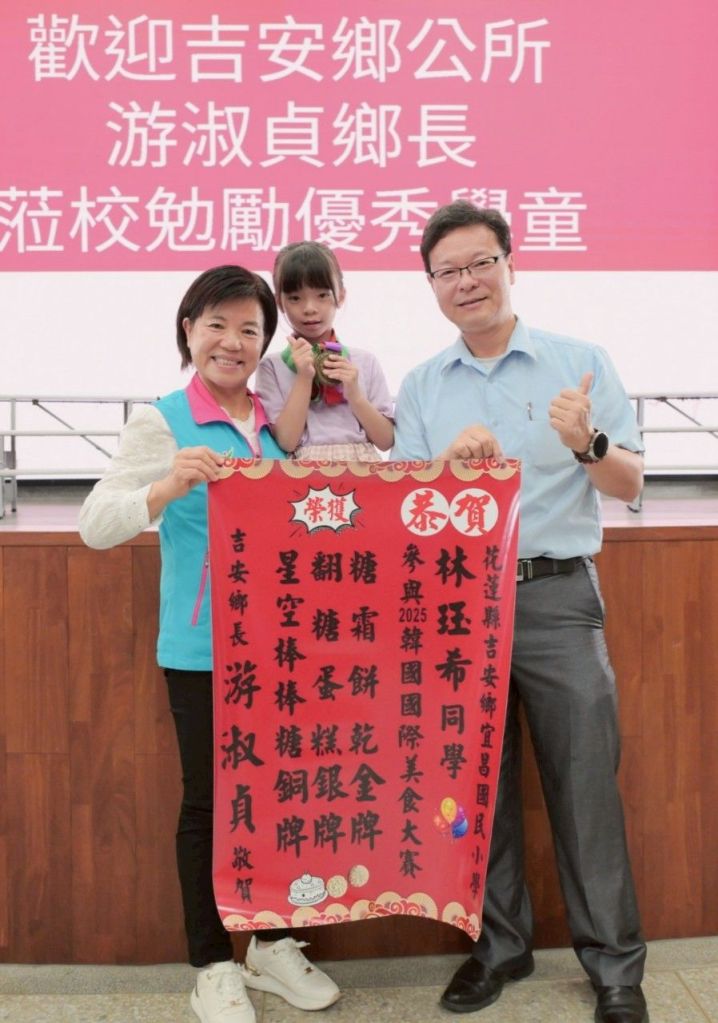 游淑貞除讚賞合唱團與直笛隊的傑出表現外,對於年僅一年級林珏希同學勇闖韓國國際美食大賽,一口氣贏得糖霜餅乾金牌、翻糖蛋糕銀牌及星空棒棒糖銅牌等多項佳績,展現花蓮孩子驚人潛力。林媽媽全程陪同出席活動,也分享親子伴學的溫馨情,更道出艱辛學習多次激勵孩子勇於克服困境的過程,最終能在國際競賽獲獎,感到驚喜與欣慰。