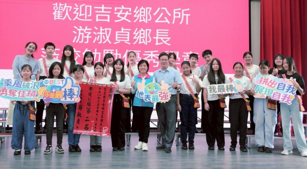 吉安的孩子再度綻放藝能佳績!鄉長游淑貞向來關注多元藝能發展,日前得知宜昌國小孩子們,分別在合唱、直笛及國際美食大賽等賽事中,再度榮獲全國及國際佳績,立即率領團隊前往貼紅榜恭賀並頒贈獎勵,肯定丁嘉琦校長與師長們傳授最專業知能技藝;宜小頒獎現場也即時展現了合唱團獻唱歌聲,和聲之美幸福響起《知足》等歌曲風華,向「鄉長阿姨」表達歡迎與謝意,純淨童聲動人心弦,氣氛溫馨激勵人心。