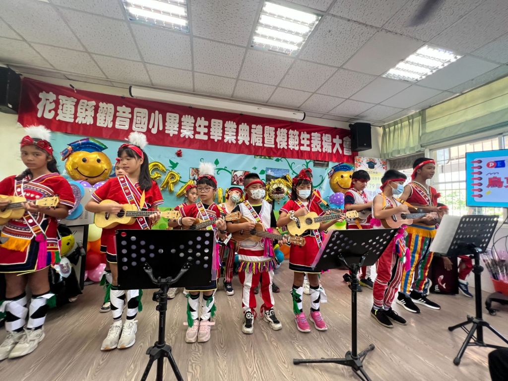 在典禮中,畢業生親自擔任鼓手,領著全校孩子合奏烏克麗麗,演出兩首充滿祝福的樂曲,展現音樂素養,也象徵著學長姐的責任與傳承精神。隨後,全體學生共同呈現原住民舞蹈,與畢業生合演最後一場在校演出,氣氛溫馨動人。典禮上也進行模範生表揚儀式,表彰學生在德行、學業與學校參與的優異表現,肯定孩子們在小而美的校園中持續努力、認真向學。