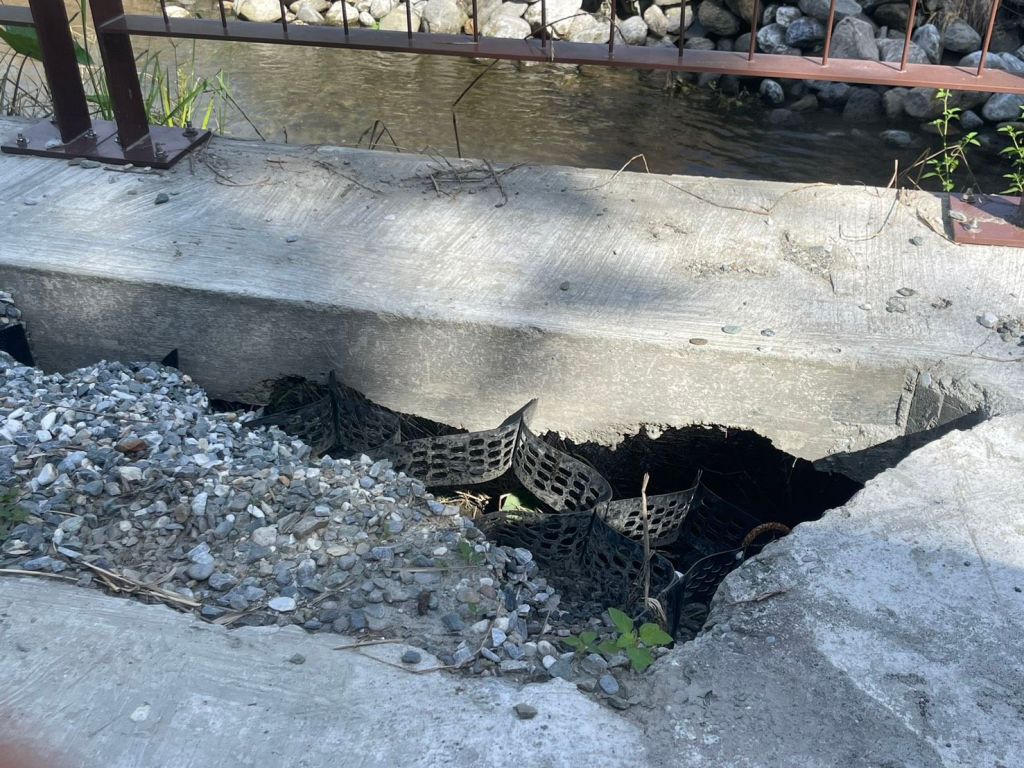 近日花蓮地區連日豪大雨,該工程竟不堪雨勢摧殘,現場千瘡百孔,自行車道雜草叢生,護堤砌石崩塌,車道基底掏空陷落,造成多處大坑洞,導致多位行人不慎跌倒受傷。遊客與在地鄉親痛批:「花了那麼多公帑,經不起幾天雨,這還叫水環境改善?」楊姓居民也表示每天都會到濕地散步,也因為自行道的長草與坑洞導致跌到受傷。