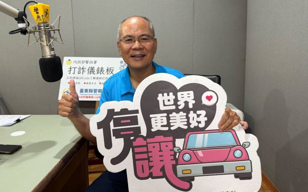 臺東縣警察局關山分局鹿野分駐所所長陳泰山,於今(25)日上午9時,受邀至警廣臺東分臺「早安所長」節目,接受主持人敏玲專訪,介紹鹿野鄉在地特色、最新詐騙手法與暑假交通安全要點,特別針對即將登場的「2025臺灣國際熱氣球嘉年華」活動,向全臺聽眾進行詳細宣導。