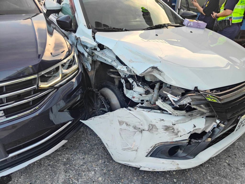臺東警分局寶桑派出所員警於今(2)日下午16時30分,執行巡邏勤務時,於臺東市臨海路與中正路口發現一部自小客車,其右側車頭幾近全毀,形跡可疑,遂上前攔停盤查。該車見警方欲攔查,隨即拒檢加速逃逸。