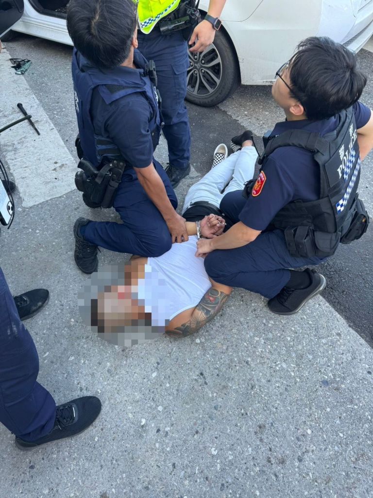 警方立即沿路追緝,並通報各單位協助攔截圍捕。過程中,員警於成功鎮八嗡嗡地區一度將車輛攔停,惟嫌疑人不但未配合,還突然加速駕車欲衝撞員警。員警見狀,為避免造成危害,朝該車右前輪射擊3槍,惟車輛仍持續往北高速逃逸。