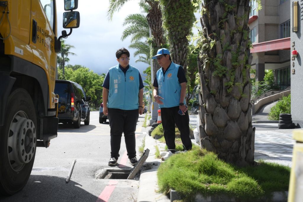 今4日下午,市長魏嘉彥分別前往中美路與永興路,及美崙市場周邊等路口,會同清潔隊長吳慶展關切排水溝及側溝清疏作業情形。為了確保地區排水功能正常,清潔隊認真投入清溝工作,絲毫不馬虎。