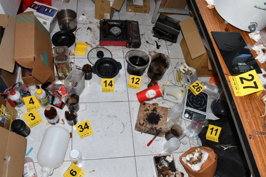 據查扣證物含半成品,經內政部警政署刑事警察局鑑定後,犯嫌係以「紅磷製毒法」製造第二級毒品安非他命,確認查獲之半成品成份為毒品先驅原料「甲基麻黃鹼(第四級毒品)」。
