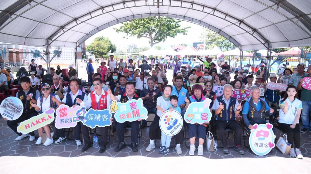 為推動客語在家庭中的自然傳承,花蓮縣政府客家事務處今(5)日於花蓮縣客家文化園區舉辦「客語家庭親子來講客」活動,縣長徐榛蔚在縣府客家事務處長潘乾鑑陪同下出席,此次活動邀請全縣親子家庭、約500人踴躍報名參與,透過親子互動、文化體驗與藝文展演,營造輕鬆歡樂的學習氛圍,鼓勵親子在互動中自然開口講客語。不僅讓家庭在遊戲中親近語言,也實踐了母語共學的核心理念,共同營造一場融合語言與情感的夏日學習饗宴。