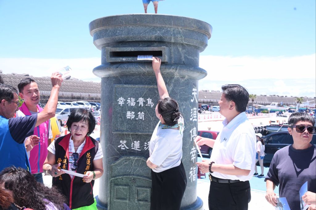 2025《好港齊來》系列活動首場【青鳥傳心】今(5)日於花蓮港向日廣場盛大登場,縣長徐榛蔚偕立委傅崐萁,在縣府農業處長陳淑雯、花蓮縣議會副議長徐雪玉、縣議員邱光明、韓林梅、笛布斯.顗賚、鄭乾龍、花蓮區漁會理事長王登義等人陪同下出席活動,徐縣長邀請民眾來花蓮漁港市集走走,把幸福寫進明信片,透過青鳥郵筒傳遞對海洋的祝福與幸福想像。