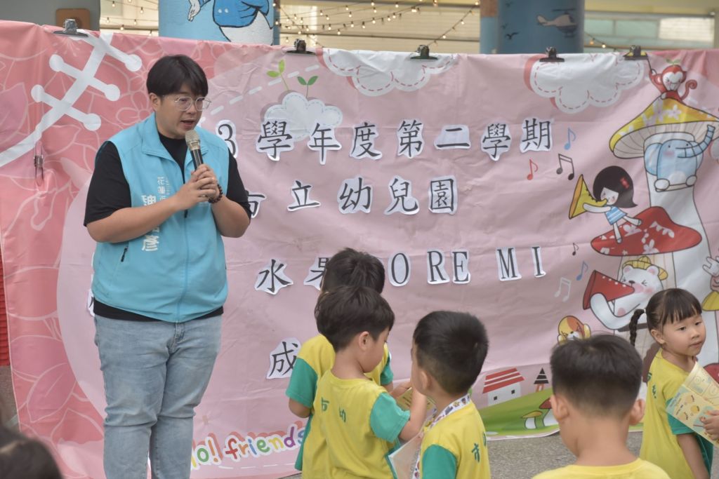 花蓮市立幼兒園今(8)日上午舉辦「水果DO RE MI」小班組主題學習成果展,魏嘉彥市長特別前往參與,與師生、家長一同見證孩子們一學期以來的學習成果。現場設計十個趣味十足的闖關活動,展現幼兒透過水果主題進行感官探索、語言表達與生活實作的豐富歷程。
