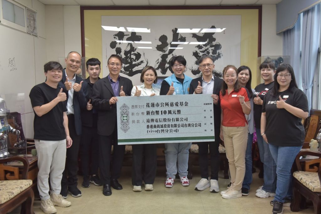 遠傳電信股份有限公司今10日再次展現企業社會責任與在地關懷精神,攜手手機品牌vivo共同捐贈新台幣10萬元予花蓮市慈愛基金,支持弱勢族群關懷與急難救助工作。