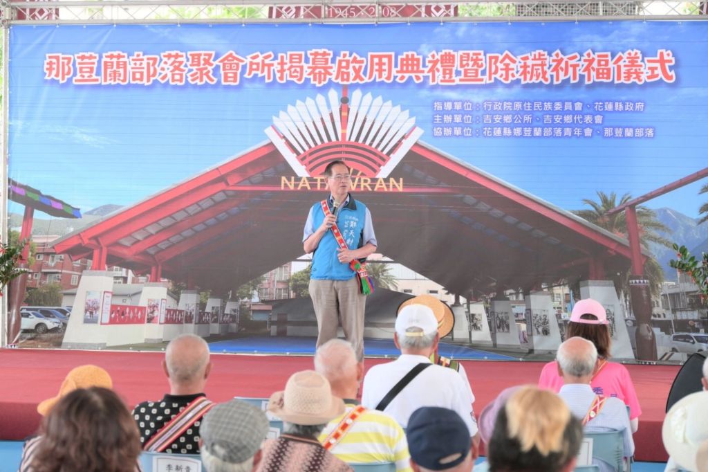鄉長游淑貞表示,「一部落一聚會所」政策是縣長徐榛蔚與中央原民會共同推動的重要方針。特別感謝106年時身為立委的徐榛蔚與鄭天財立委攜手合作,成功在中央爭取土地變更法案修整,讓這項部落族人等候18年的心願成真。該案由花蓮縣政府自編預算補助2000萬元、原民會核定補助1000萬元,吉安鄉公所自籌119萬7699元。工程自112年12月開工,今年6月複驗完成,設有聚會空間、辦公室、衛浴設備、36格停車位與戶外樂活區,充分滿足部落各項活動所需。聚會所建築也富含文化意涵,立柱標示著Natawran部落九個年齡階級(Selar),象徵族人從少年到長老的責任傳承與生命歷程。