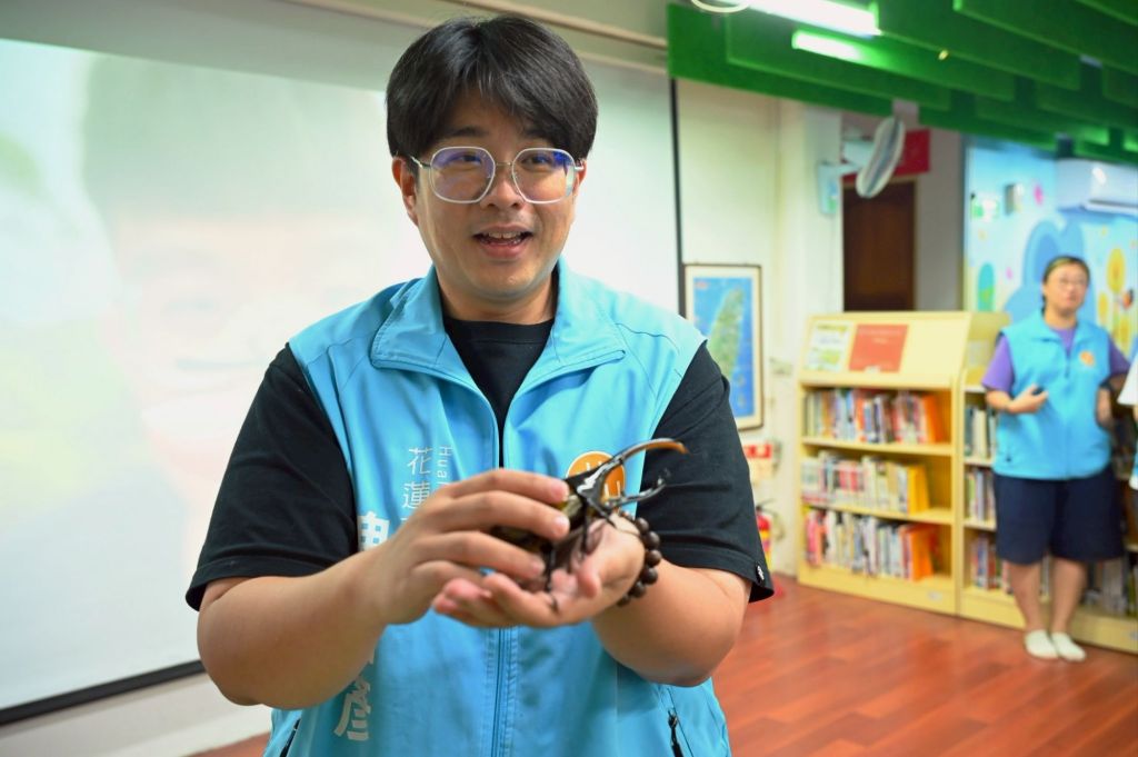 「皮特玩自然」以深入淺出的方式,向學員介紹巨人馬陸、長戟大兜蟲、螽斯蟲及跳蚤等多種昆蟲,讓孩子們不僅能近距離觀察活體昆蟲,更能從中學習到各種生態知識。皮特老師表示,非常開心能再次受邀到花蓮市立圖書館授課,期待未來能有更多機會,帶領大家一同探索大自然的奧秘。
