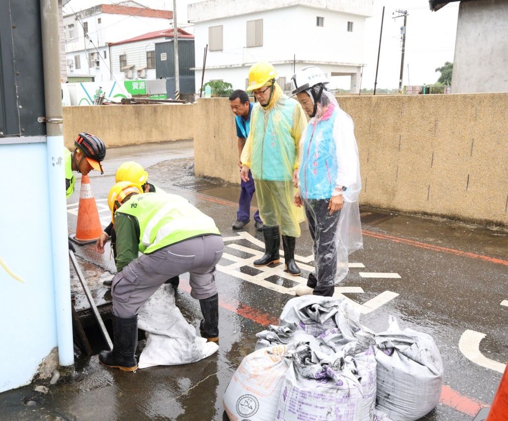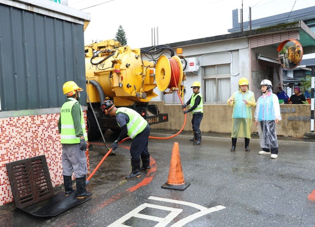 清潔隊迅速前往多處社區要道,針對排水溝渠進行清淤除障。游淑貞鄉長親赴現場關切執行狀況,慰勉隊員辛勞,並聽取清潔隊長樊一明回報寶福路段因山區大雨造成樹木斷落,迅速修剪及障礙排除進度。同時,要求文觀所、建設課盤點工程地點預防狀況,儲備砂包數量與清淤相關機具運能狀況,確保所有防汛物資整備就緒。