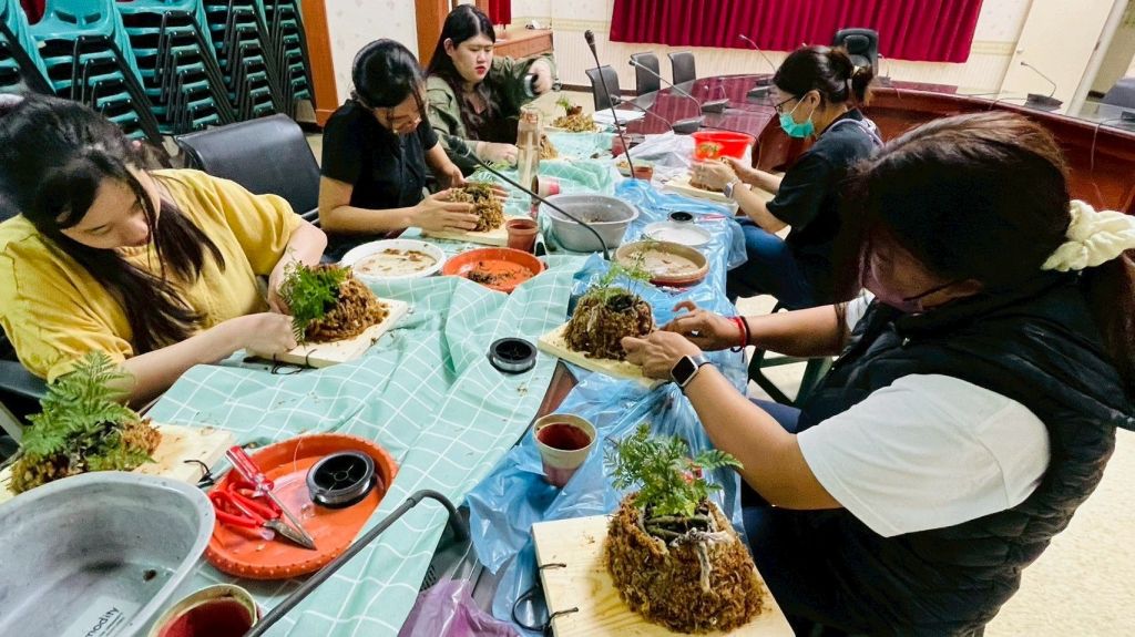《手作多肉植物》課程則邀請花蓮知名的璞石閣多肉園藝創辦人黃振鴻老師授課。黃老師以豐富的園藝經驗,帶領同仁認識多肉植物的特色與照護重點,並設計實作活動,讓參與者自由搭配喜愛的多肉品種與裝飾配件,創作出富有個人風格的療癒植栽。多肉植物小巧可愛且易於照顧,深受同仁喜愛,課程氣氛溫馨熱絡,笑聲與專注並存,充分展現園藝帶來的正向能量。