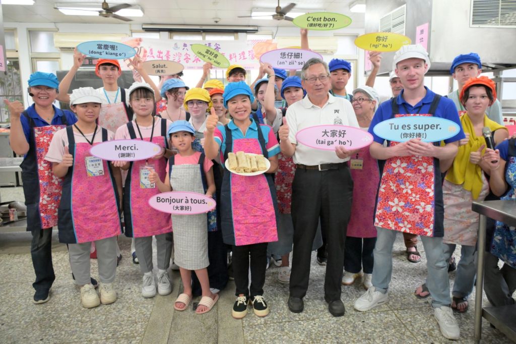「廚藝動手做、客語自然講!」吉安鄉公所為推動客語文化扎根並深化青年學子國際交流經驗,安排與四維高中於7月21日至25日共同舉辦「共下來講客・煮出臺灣客家味創意料理營」。本次特別邀請來自法國布列塔尼地區坎培拉中學的13位高中生來台,與本地18位高中生混合編組,展開為期五天的跨國交流體驗,游淑貞鄉長親出席陪同,與學子們一同體驗做「客家豆皮糯米捲」和「紅酒燉閹雞」美食,彼此在華語、客語與法語交錯中交流,透過料理認識世界好滋味。