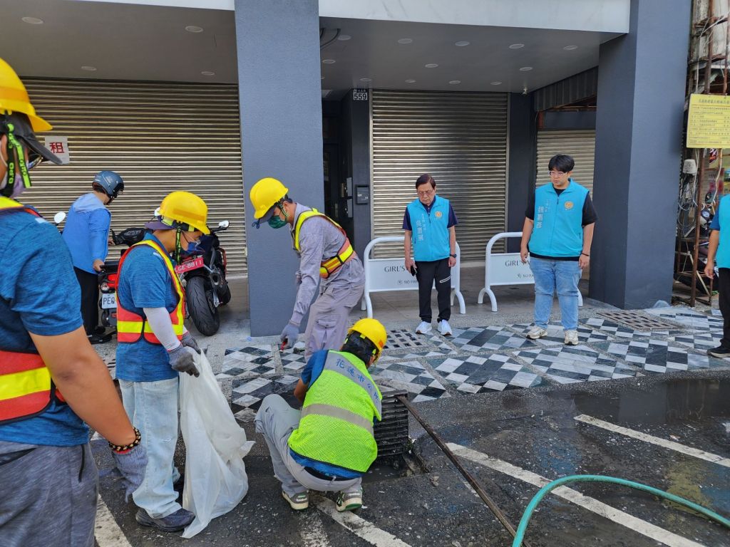 針對日前花蓮市中正路557號前因連續降雨造成積水情形,花蓮市清潔隊今(24)日上午已完成進一步清疏作業,排除堵塞狀況,恢復排水功能。市長魏嘉彥到場關心,強調市公所將持續密切監控颱風動態,與市民攜手嚴防災情。此次積水問題,當地住戶林先生表示,近來只要大雨,家門口就會積水至腳踝深度,範圍橫跨好幾個車格。