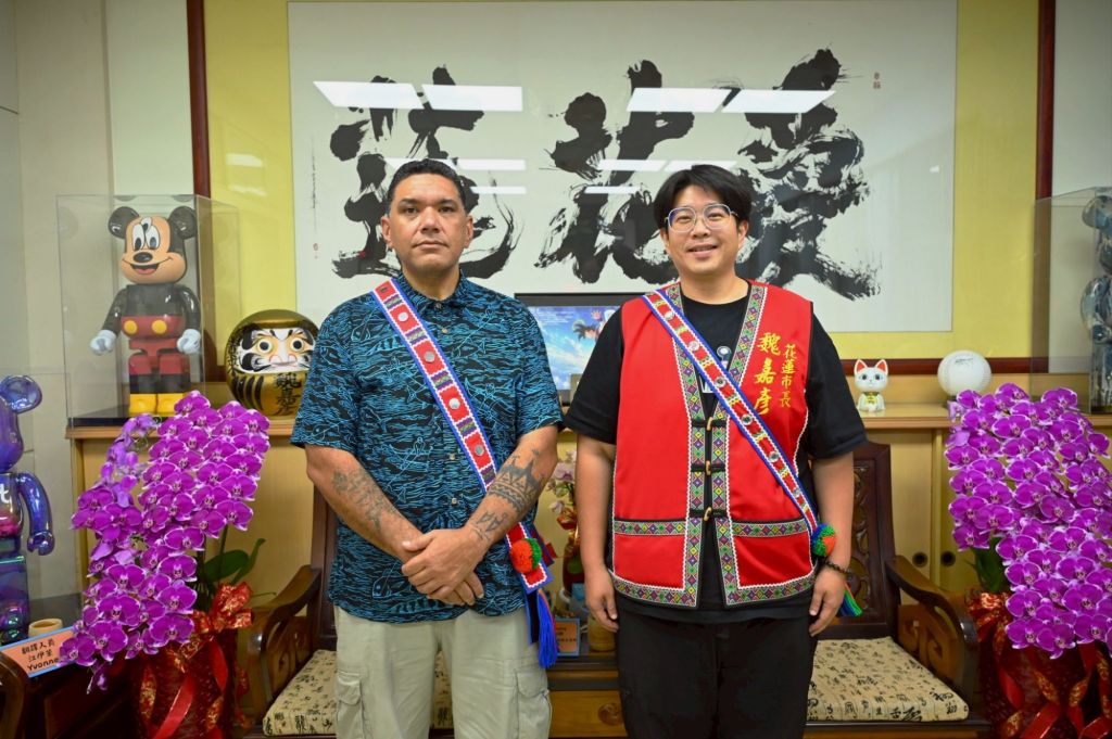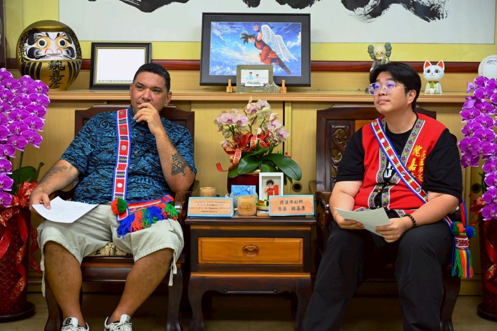 花蓮市公所於昨(28)日下午舉辦一場具文化交流意義的會晤活動,市長魏嘉彥偕同花蓮縣議員魏嘉賢及笛布斯‧顗賚,接待來自紐西蘭的傳統造舟工藝師 Heemi Eruera。魏市長誠摯歡迎遠道而來的貴賓,並強調花蓮與南島語族文化間的歷史與情感連結,期盼透過文化互訪深化彼此理解與合作。Heemi 則以毛利族傳統的「hongi」鼻吻禮回應,象徵尊重與友誼,也為雙方交流揭開融合序幕。
