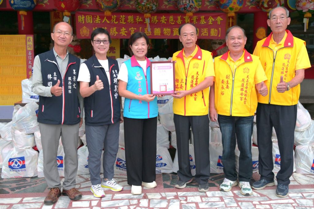 位於吉安鄉境的勝安宮王母娘娘總堂,有感吉安鄉公所推動社會關懷救助到位,積極串聯社會資源援助弱勢家庭深受鄉親認同,在委員會的支持下由柏瑞青主委,親自率宮務團隊辦理物資捐贈活動,特準備豐富綜合民生物資100份轉贈鄉內弱勢族群,由吉安鄉長游淑貞、花蓮縣婦女會理事長邱美雲、吉安鄉溫馨家族慈善基金會理事長黃松生到場接受並回贈感謝狀,感謝宗教宮廟團體共啟吉安鄉弱勢家戶關懷,開啟社會救助的善循環正能量。