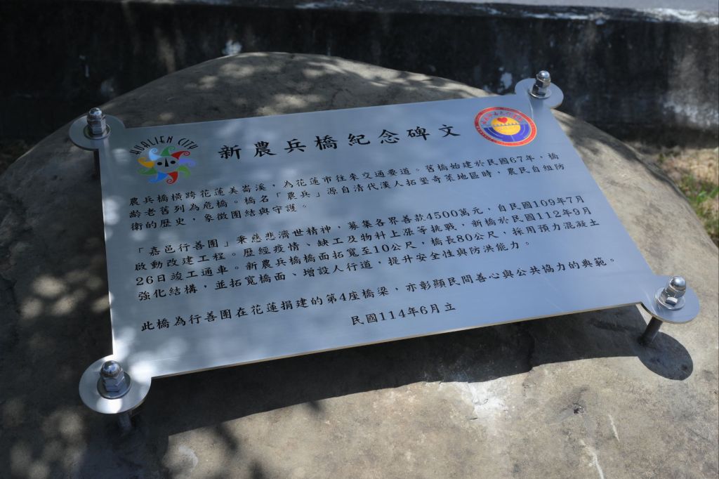 新農兵橋是嘉邑行善團以善款興建的第558座橋梁,自109年起與市公所攜手推動,期間歷經疫情、物價調漲及缺工等挑戰,歷時三年終於在112年正式通車。興建過程中,不少理監事幹部親自多次前來花蓮監工,如今親見通車成果,更憶起當時的點滴情景。地方人士亦無私協助,包括闕家親屬完成母親遺願、鄰近地主彭先生提供土地,促使工程順利推進。