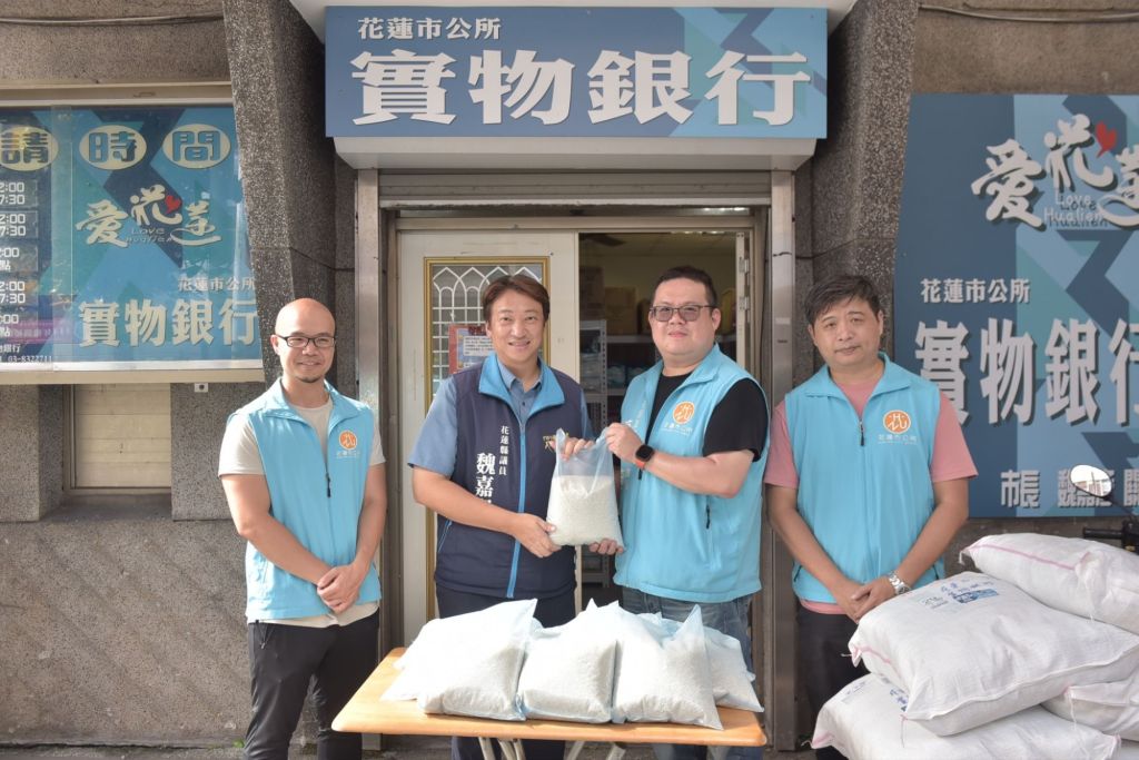 魏嘉賢議員說,過去擔任花蓮市長時便與李女士熟識,從開辦實物銀行至今她已捐助數千公斤的白米給花蓮市的弱勢戶,期盼每一位需要幫助的人在急難時刻都能受到照顧,花蓮市公所無論是過去,現在或是未來都會持續幫助社會的弱勢族群。也歡迎有更多人一起關懷弱勢團體,豐沛實物銀行的資源。