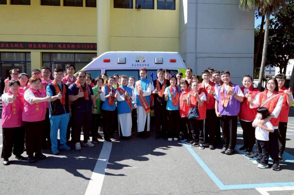 台中豐龍聖道堂與台中蘇玉枝慈善基金會,奉地母娘娘慈悲懿旨,巡迴花蓮十三鄉鎮市關懷低收入戶,於今(17)日在中華國小發放花蓮市960戶物資中,圓滿第十三場共5220戶關懷善行,在鄉長游淑貞、花蓮縣消防局副局長李龍聖及相關人員見證下,由堂主廖淨愷代表捐贈高達498萬全配備救護車「地母5號」一輛,增加北花蓮救災服務量能,同在祈福團拜法會後,加碼捐贈500份生活物資予吉安鄉,為社會弱勢傳遞大愛關懷。廖堂主表示,長期感受鐵人鄉長游淑貞認真服務的熱力,這幾年來每次的捐贈活動或祭祀祈福,游鄉長都會親身陪同參與,因此感受到花蓮濃郁的人情味。台中豐龍聖道堂結合各宮廟愛心捐助花蓮,希望拋磚引玉為社會帶來善愛循環正能量。