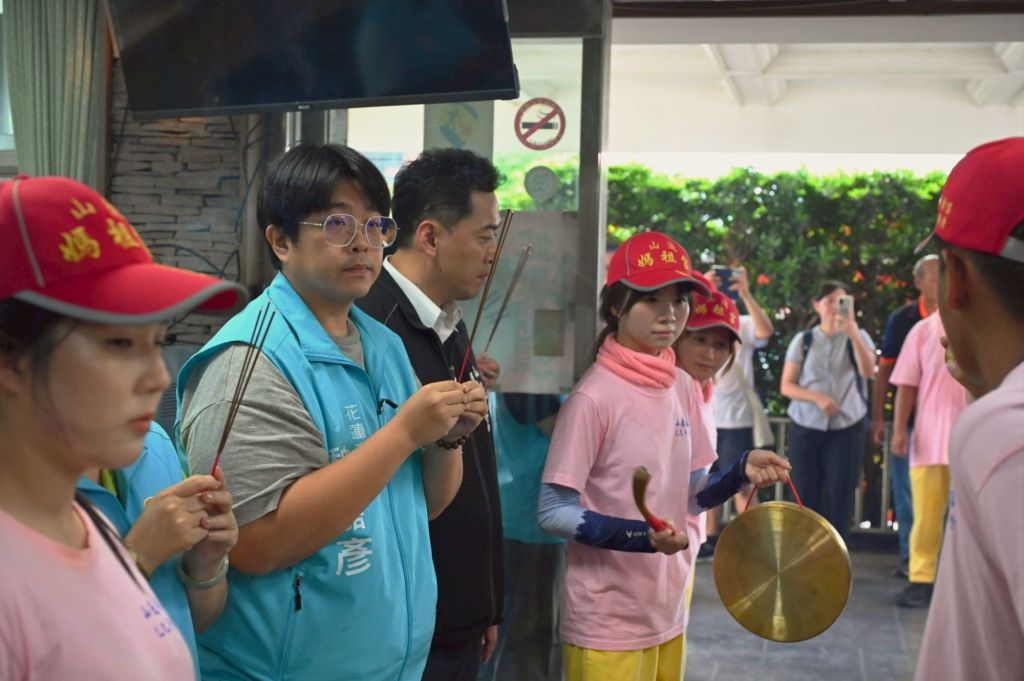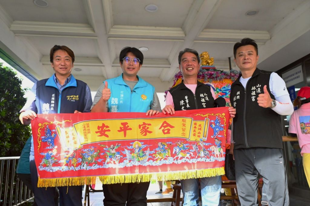 魏市長與魏嘉賢議員一同恭迎媽祖,虔心祈願「四時無災、風調雨順、市民安康、家家平安」。他並指出,媽祖慈悲精神讓市民更加團結,凝聚力量共同打造更好的花蓮。