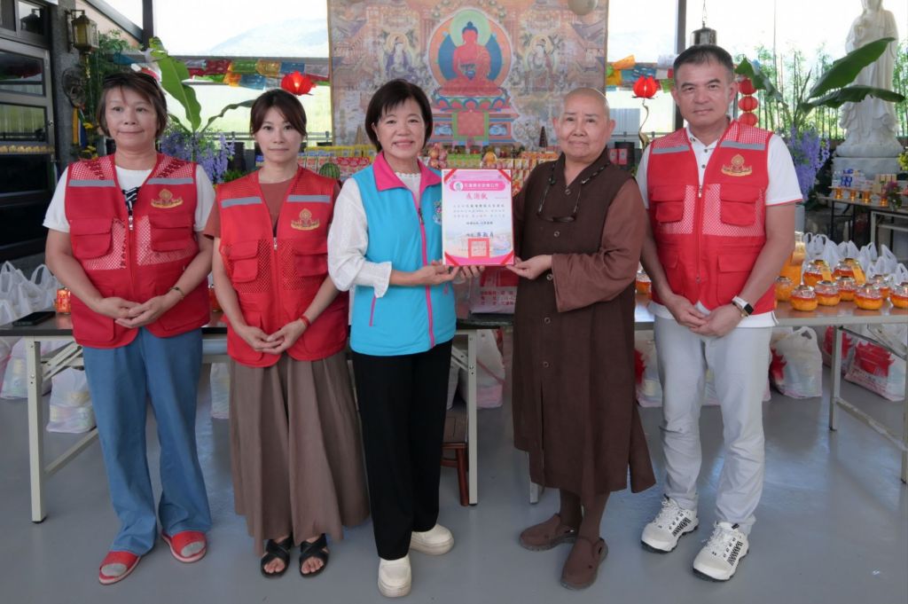 吉安鄉公所社會救助關懷到位,獲各界愛心企業與宮廟團體肯定,也獲得接力式連結資源持續濟助能量,為弱勢家庭注入生活輔助關懷。日前,花蓮噶舉蓮花菩提苑辦理大型祈福祭祀法會,由法海師父號召眾信大德慈悲獻愛,佈施普渡平安物資近千份,其中指定提供吉安鄉境內的弱勢家庭300份,盼透過吉安鄉公所社會福利平台專送到案家。一向視鄉民如親的鄉長游淑貞,親到場感謝佛學院發揮大愛精神並回贈感謝狀之外,也參與祭祀活動,願藉助眾人善心共同祈祝社會祥和、鄉親健康平安。
