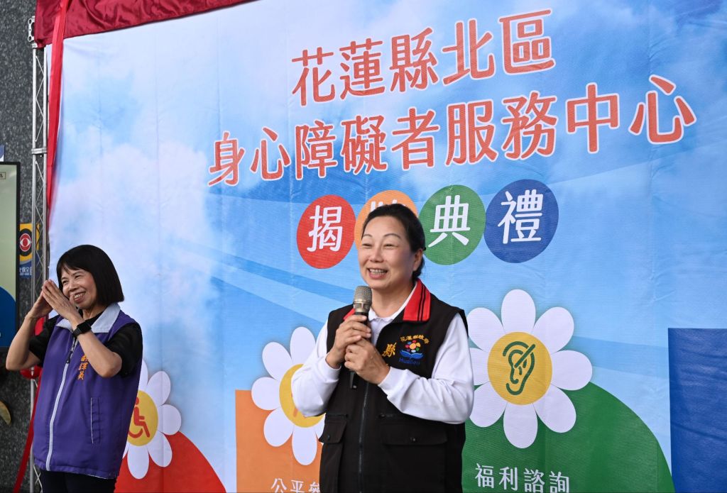 縣長徐榛蔚表示,花蓮縣政府今年推出北、中、南區各成立身心障礙者福利中心來服務弱勢鄉親,未來中區在鳳林鎮成立,南區將在玉里鎮成立,更希望讓服務更細緻化,身心障礙者服務中心將完全服務身心障礙者,內部也區分很多的項目來服務、做媒合的平台,透過社工員的協助,協助服務對象增進自我倡導能力,學習自我肯定,並舒緩家庭照顧者的壓力,讓服務更加邁向新的里程碑,讓花蓮縣身心障礙者權益及福利愈臻完善。