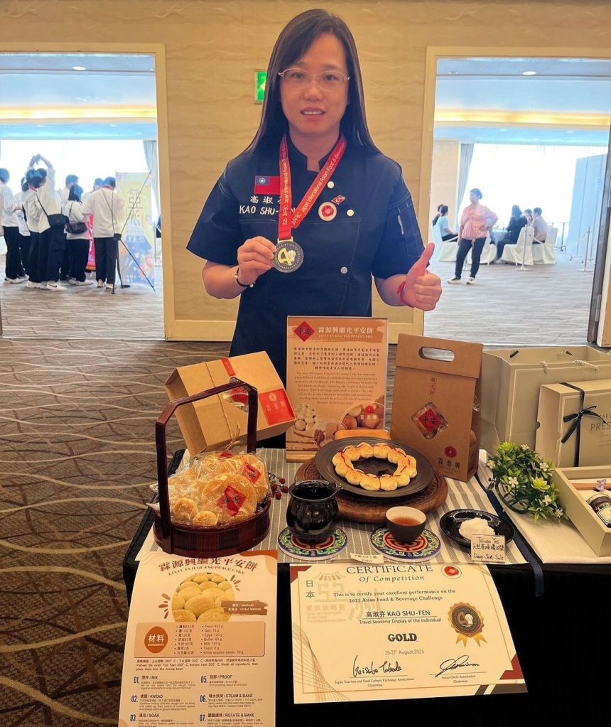 鼓勵高淑芬參賽的黃湘涵老師,專精翻糖蛋糕與各式甜點創作,尤其擅長將花蓮在地食材與文化特色融合於作品中,是國際賽事的「常勝軍」。她表示,一直希望學生能勇敢把花蓮的味道帶上國際舞台,而繼光餅展現了台灣老一輩人的記憶與文化,這不只是比賽的勝利,更是花蓮美食走向世界的重要一步。她期待有更多青年投入傳統糕餅創新,將地方特色發揚光大。