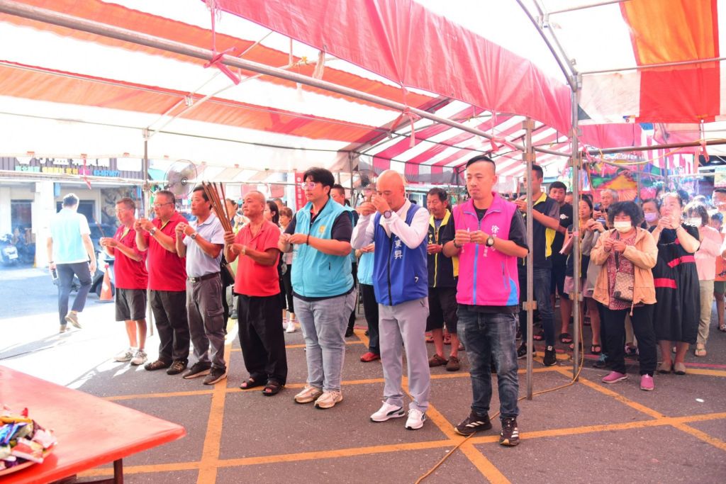 市長魏嘉彥偕同主任秘書翁美華與市場所長邱信都等人特地到場與民眾一同參與祭典,中山市場自治會長陳新安與市場攤商及福德宮信徒並肩焚香祈福,縣議員吳東昇、徐子芳議員服務處主任楊喻涵也到場致意,現場香煙裊裊、人聲鼎沸,氣氛熱鬧而不失莊重。