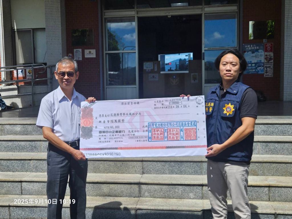 台灣電力公司花蓮區營業處處長陳鈞泰致詞時感謝鳳林分局長期以來對電力設施的保護與打擊犯罪的努力,強調電力安全是地方發展的基礎,未來將持續深化與警方的合作,共同維護花蓮縣的治安與用電環境。會中,副分局長涂國材代表鳳林分局接受捐贈,並承諾將善用這筆經費,提升分局的治安巡邏與社區防範工作,讓鳳林鄉親享有更安全的居住環境。 鳳林警分局呼籲民眾,若發現可疑竊盜行為,請立即撥打110報案,一同守護家園。