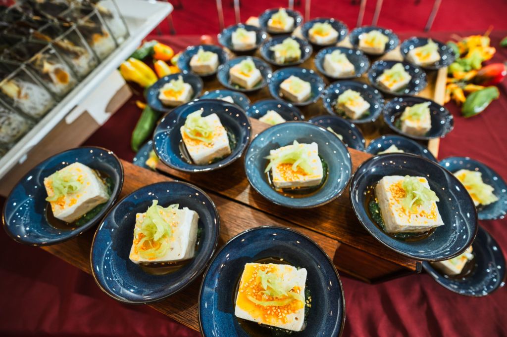 林仁中主廚於講座現場示範「柚醬銀絲紫蘇鮑魚、川味紅油奶魚豆腐、南洋娘惹燻雞金杯」,選用鮑魚、鬼頭刀魚與雞肉搭配花蓮在地種植的白蘿蔔、胡蘿蔔、木鱉果、魔鬼椒、火龍果、奶油萵苣、羽葉金合歡、韭菜花、蛇紋瓜,以及當季盛產的柚子,展現創意的廚藝詮釋。現場民眾好奇各種在地食材的料理方式,林主廚皆不吝分享,吸引民眾紛紛拿出紙筆詳細記錄。主廚以木鱉果為例,說明成熟的黃色木鱉果可入湯、製作麵包或冰淇淋,未成熟的綠色果實則能刨絲做涼拌;蛇紋絲瓜則可去皮醃漬成脆瓜、炒肉絲,或替代小黃瓜搭配蜂蜜製作涼湯。這些分享,讓與會者更深入了解如何善用花蓮多樣的食材特色。