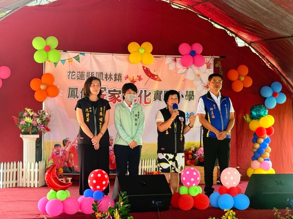 今日揭牌典禮貴賓雲集,包括客家委員會主任秘書廖育珮、專門委員曾貴惠、委員葉仁基、委員李惠敏、立委傅崐萁服務處主任陳威誠、花蓮縣政府中區服務中心副主任林榮祿、教育處處長翁書敏、客家事務處處長潘乾鑑、客家發展會報委員呂嵩雁、委員鄧明星、花蓮縣議會副議長徐雪玉、議員林正福、議員林則葹、議長張峻辦公室特助沈詩芸、鳳林鎮公所秘書徐誌謙、鳳林戶政事務所主任彭淑萍、鳳林鎮民代表會代表劉喜湘、代表翁林瑞蘭、鳳林鎮前鎮長蕭文龍、花蓮縣教育會理事長江政如、花蓮縣家長協會理事長傅萬其、花蓮縣客屬會鳳林分會理事長梁添登、花蓮縣童軍會理事長蔡錦樟、花蓮縣鳳仁國小家長會長朱昱達、慈濟基金會理事長李麗玉、花蓮救國團總幹事邱瑞智、花蓮縣鳳林鎮軟網協會理事長賴岡黌、牛根草社區促進會理事長張國恭、鳳林五聖宮管理委員會主委林振鏘、現任及退休校長數十位出席參加。