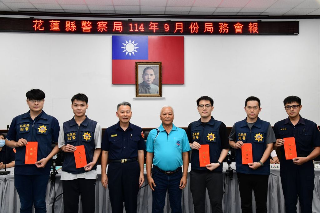 花蓮縣警察之友會為感謝員警辛勞,於昨18日下午由立川漁場經理蔡國華在花蓮縣警察局9月份局務會報頒發破案獎金,這次授獎分別偵破販毒集團、組織犯罪案、違反槍砲彈藥刀械管制條例案、詐欺車手團案及殺人未遂案等16件案件。