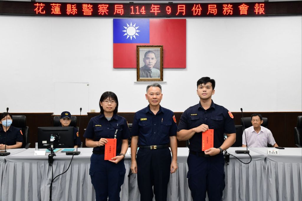 局長陳百祿表示,此次有兩位同仁通過三等特考,希望兩位同仁們未來在工作崗位上能繼續拿好表現。114年8月份員警優良服務事蹟計有13員授獎,值得嘉許,透過局務會報表揚肯定上開績優員警的優秀表現,讓其他同仁標竿學習。