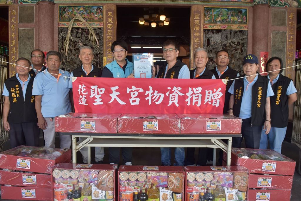花蓮市聖天宮日前一連三天舉辦「乙巳年中元普渡法會」,祈求社會祥和、百業興隆,為民眾消災解厄,並捐贈399份物資予花蓮市公所實物銀行及各市內各里,市長魏嘉彥今20日親自致贈感謝狀,感謝聖天宮及信眾的善心,為弱勢族群帶來溫暖及實質的幫助。