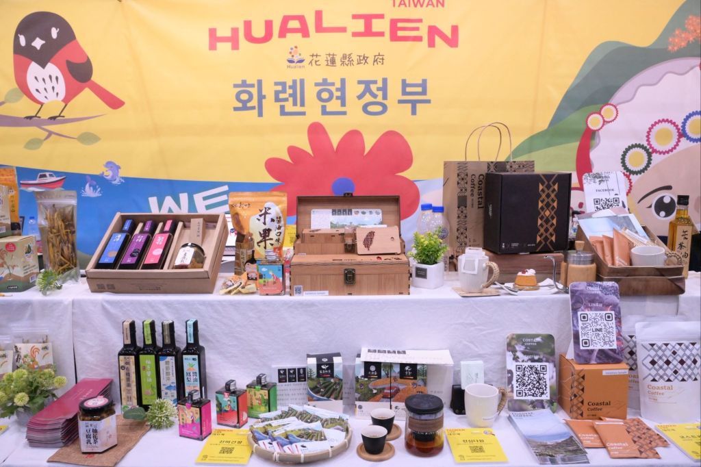 徐縣長親自向堤川市長夫人逐一介紹品牌,讓同樣盛產健康天然物產的堤川市也認識花蓮優質產品。此次參展13家花蓮企業包括「海岸咖啡」、「德森農莊」、「文旦復興」、「立川漁場」、「新味醬油」、「樸實構果」、「一品醇」、「原生好物」、「新糖城科研」、「淺草堂」、「天心茶園」、「東一嚴選」、「大添農」。特別的是,本次透過花蓮縣農會英/韓文線上商城,以跨境電商方式、線上線下虛實整合協助業者向國際行銷。(網址:https://hlfa.shoplineapp.com/?locale=en)