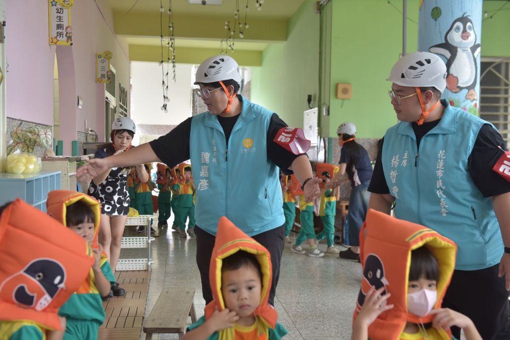 每年的9月21日是「國家防災日」,花蓮市立幼兒園配合全國「國家防災日」,由於今年的9月21日適逢星期日,花蓮市幼提前在19日實施地震避難掩護演練,小朋友在老師帶領下完成地震趴下、掩護、穩住的保命三口訣,在地震時能保護自己,市長魏嘉彥全程參與並給予孩子們滿分的肯定。