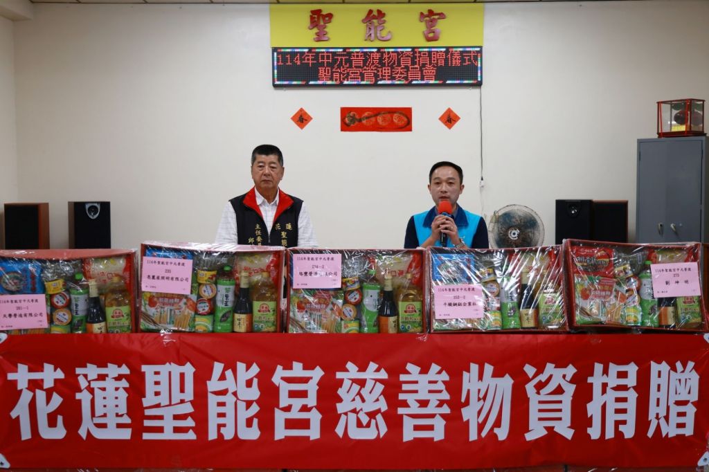 坐落於吉安鄉的聖能宮,自游淑貞鄉長上任以來,已連續七年捐贈物資協助鄉境弱勢家戶。日前於隆重普渡祈福大典後,再度挹注善愛捐贈百份物資,其中90份發送給本鄉弱勢家戶,其餘10份則透過犯罪被害人保護協會花蓮分會轉贈家戶,將宮廟慈悲精神擴及需要被幫助的各角落。