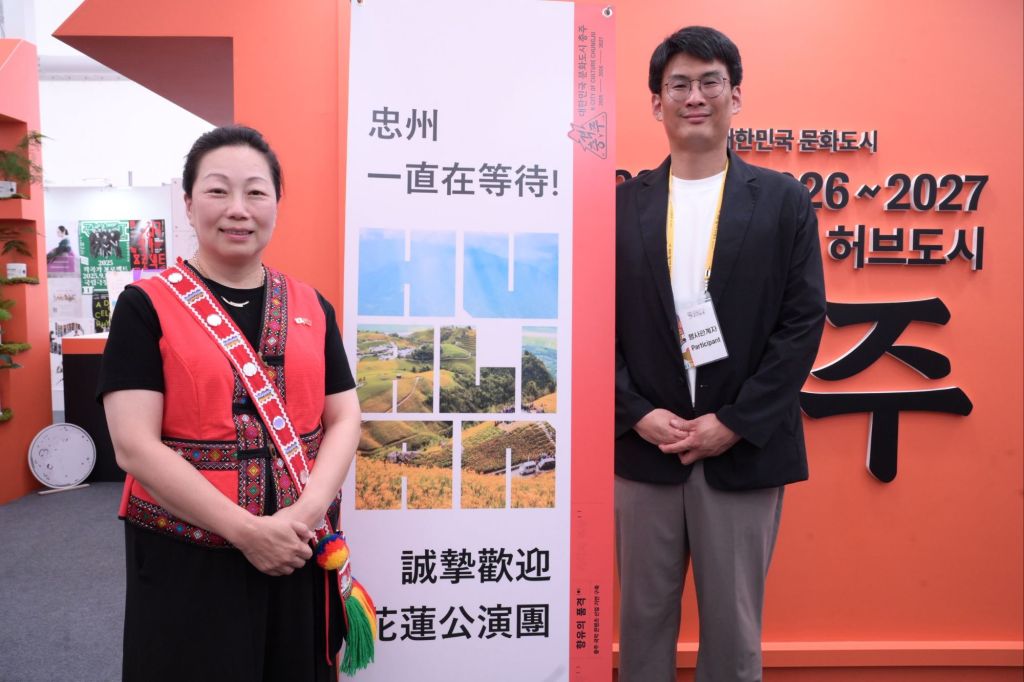 花蓮縣長徐榛蔚今(21)日率團出席韓國「永同世界國樂博覽會」(Yeongdong World Gugak Expo),並由花蓮縣政府「阿勒飛斯文化藝術團」於現場演出原民樂舞,主辦方韓國忠清北道永同郡守鄭永喆出席觀演,及忠州文化觀光財團中心長申戴旻陪同,展現花蓮原住民文化樂舞魅力。