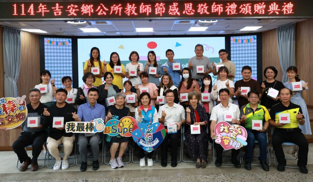 鄉長游淑貞表示,教師是教育志業最堅實的根基,每年公所都會舉辦教師節表揚活動,以實際行動向教育典範致敬。自108年起,吉安鄉逐步規劃兒童節、教師節禮品與兒童節禮金,今年更進一步增設青年節獎金,營造出完整的教育關懷鏈,讓學生與教師都能感受公所的支持與溫暖。