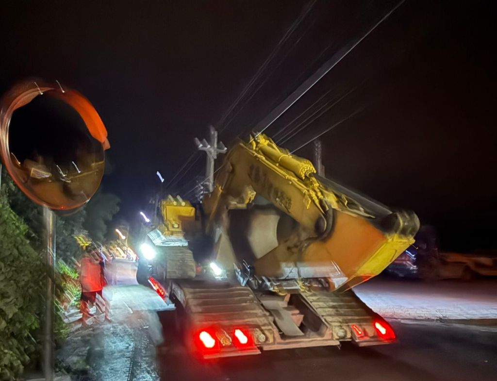 抵達後,現場立即展開卸車作業。由於機具龐大,過程耗時繁瑣,眾人不眠不休奮戰,直到 凌晨12點30分,才順利完成所有重機械的下車與定位。這份連夜支援的辛勞,讓在場鄉親深受感動,紛紛表示「這才是真正的幫忙」。