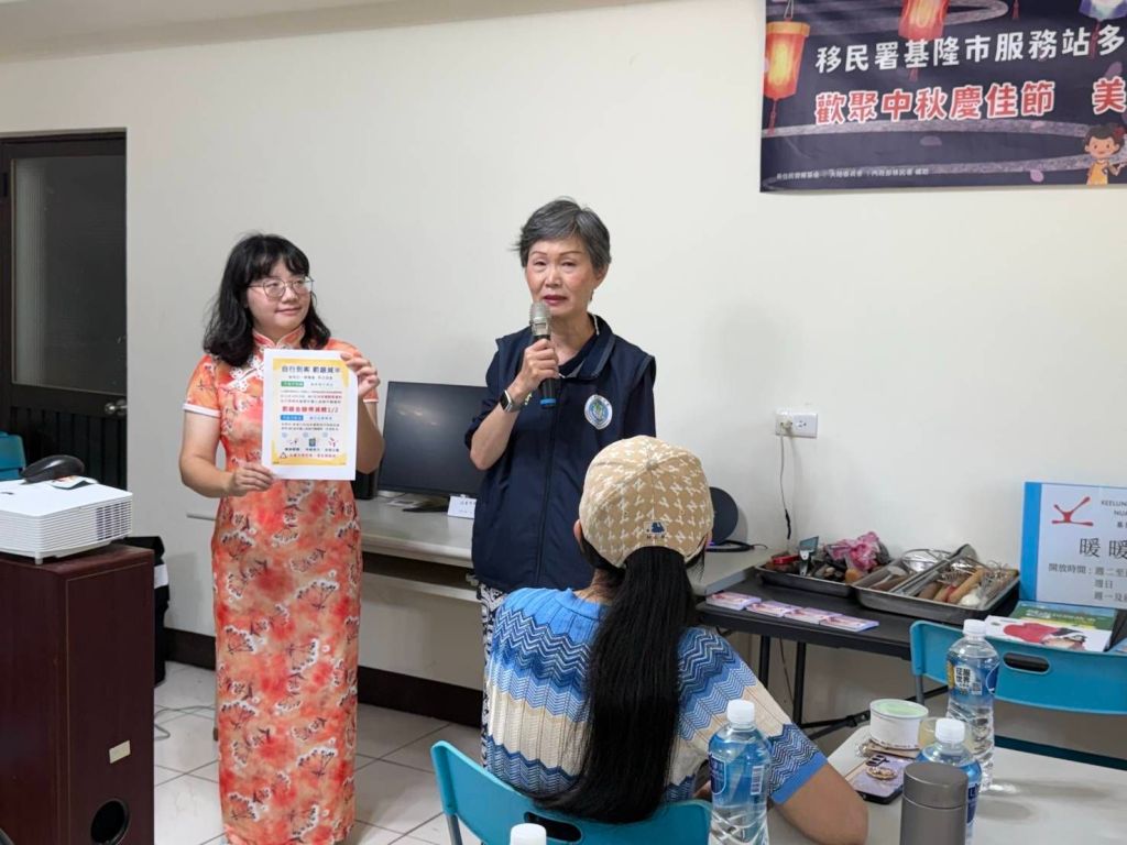 基隆市服務站主任毛兆莉表示,透由連結私部門共同舉辦活動,緩解新住民朋友們平日的緊張與忙碌,並慰藉其思鄉情緒,也讓生活在臺灣這塊土地上的各個族群更加凝聚團結。此外,移民署自114年10月1日(星期三)起,修正發布入出國及移民法第七十四條之一特殊事由認定及減免處罰標準,增訂在治安機關查獲前自行到案的逾期外國人或無戶籍國民,罰鍰金額得減輕二分之一之規定,期能幫助在臺逾期外來人口儘速返鄉,早日與母國家人團圓。最後,祝福在臺新住民及移工朋友們中秋節快樂!