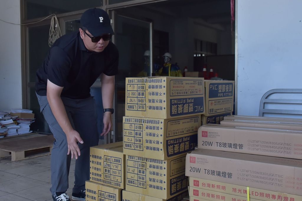 繼日前台中市長盧秀燕秉持「人飢己飢、人溺己溺」精神,率領「家具超人」團隊送來再生家具協助災民後,台中亦荃水電材料行負責人陳義仁與誠偉水電材料行老闆王振崇共同響應,決定捐贈價值逾百萬元的水電材料,並於今(8)日清晨親自派車運送至花蓮,五大台的皮卡滿載各種電器,包含58台抽水機、66台電子穩壓機、100組照明設備及大量插座與開關,這些正是受災家庭最迫切的需求。